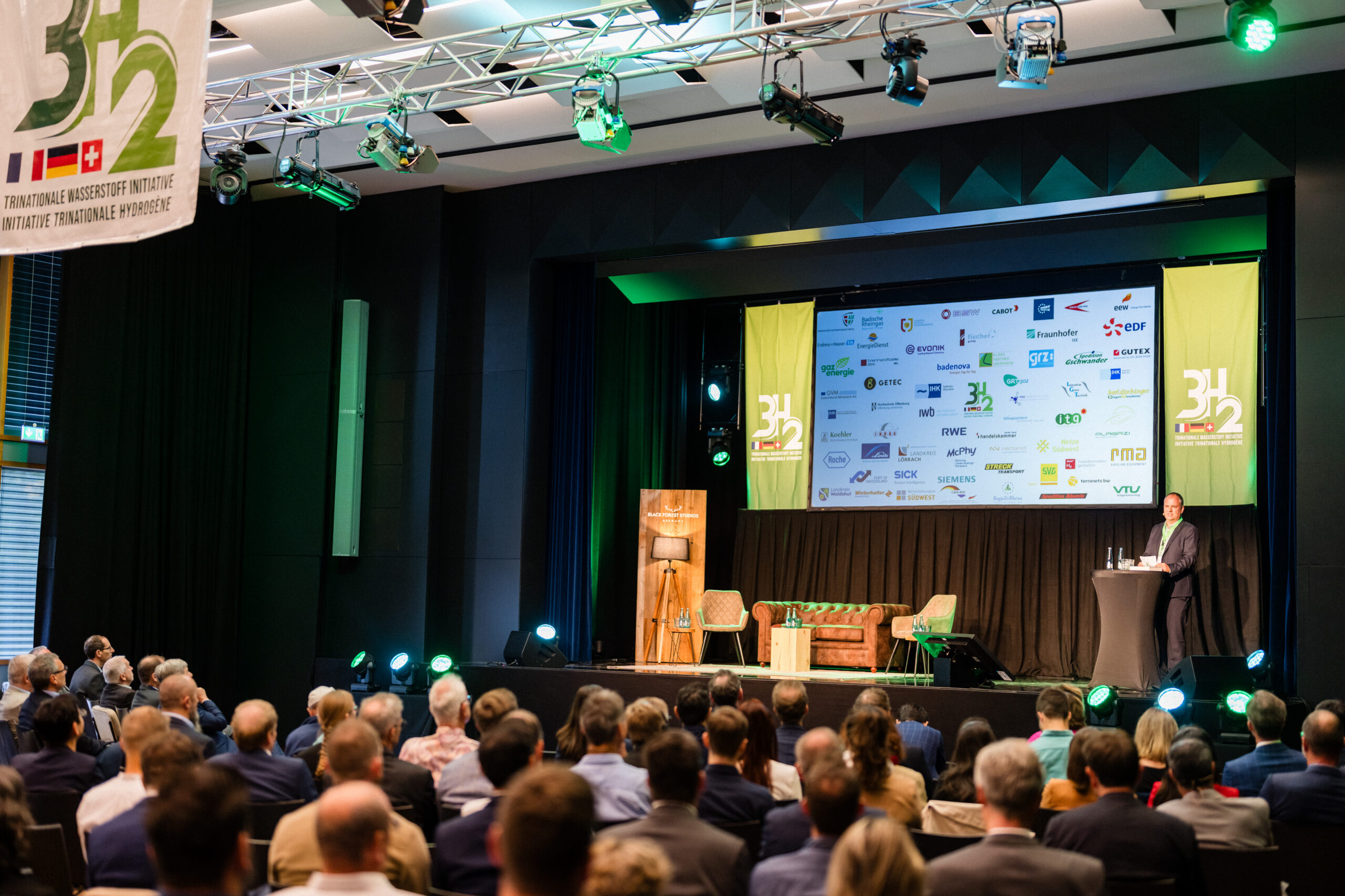 Am 3H2-Forum diskutierten ca. 250 Teilnehmende in den Black Forest Studios in Kirchzarten, wie der Hochlauf der Wasserstoffwirtschaft im Dreiländereck realisiert werden kann. Dabei gibt es vielschichtige Herausforderungen und die zeitliche Umsetzung drängt. Beim Zusammentreffen des Wasserstoff-Ökosystems überwog aber der Optimismus: Es wurden konstruktive Diskussionen geführt, Appelle an die Politik gehört, Fragen beantwortet, wertvolle Gespräche geführt und Kontakte geknüpft. Auf der Bühne und abseits der Bühne.