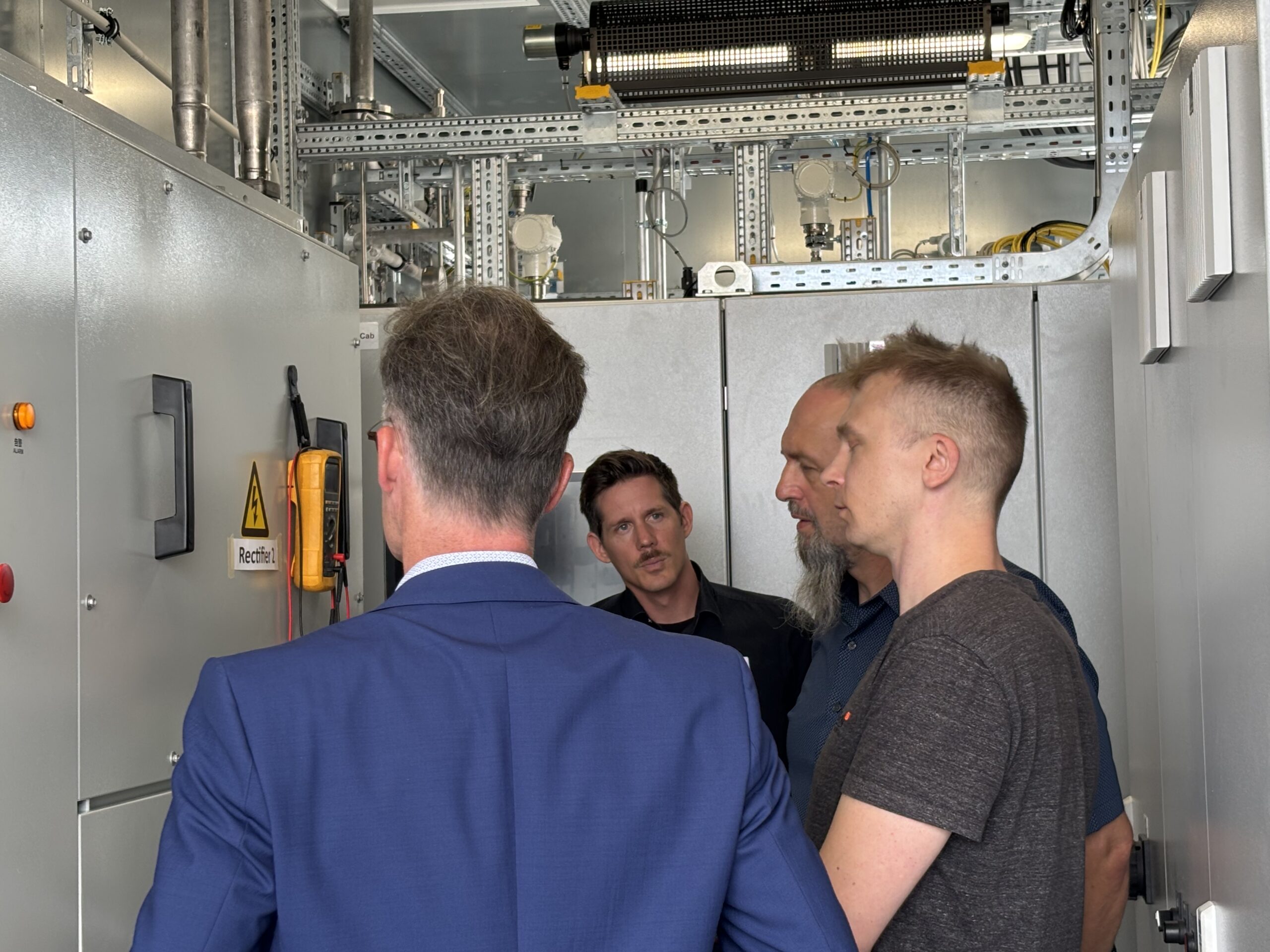 Rétrospective : le 4 septembre 2025, notre série d’événements « 3H2-On the spot » s’est rendue chez ST Engineering à Germersheim. Les 12 participants ont pu y découvrir l’électrolyseur HubGen 1000, entièrement repensé. Caractéristiques techniques : système modulaire et compact d’une puissance de 1 MW, pression de sortie de 30 bars, rendement du système de 70 % et durée de vie de plus de 20 ans. Particularité : solutions de surveillance intelligentes permettant de garantir une durée de fonctionnement maximale de l’installation et de contrôler la production à distance de manière fiable et stable à tout moment. De plus : solutions de cybersécurité à la pointe de la technologie.